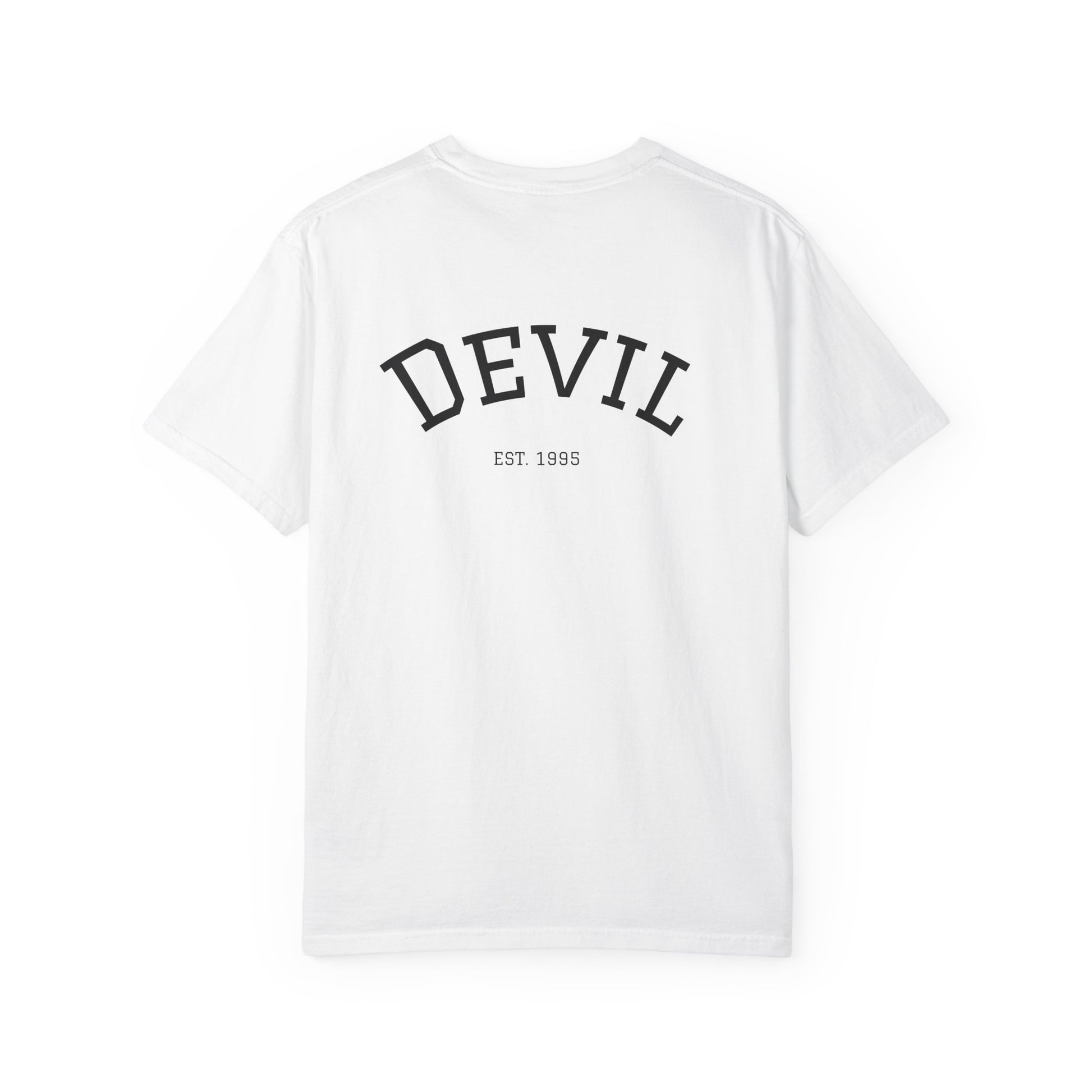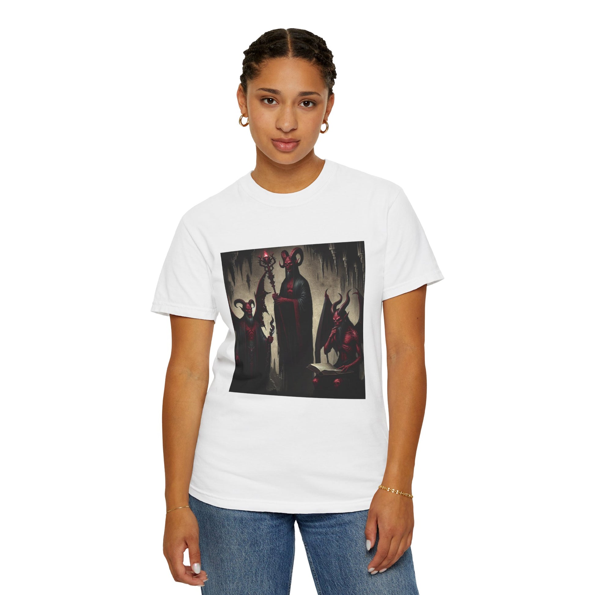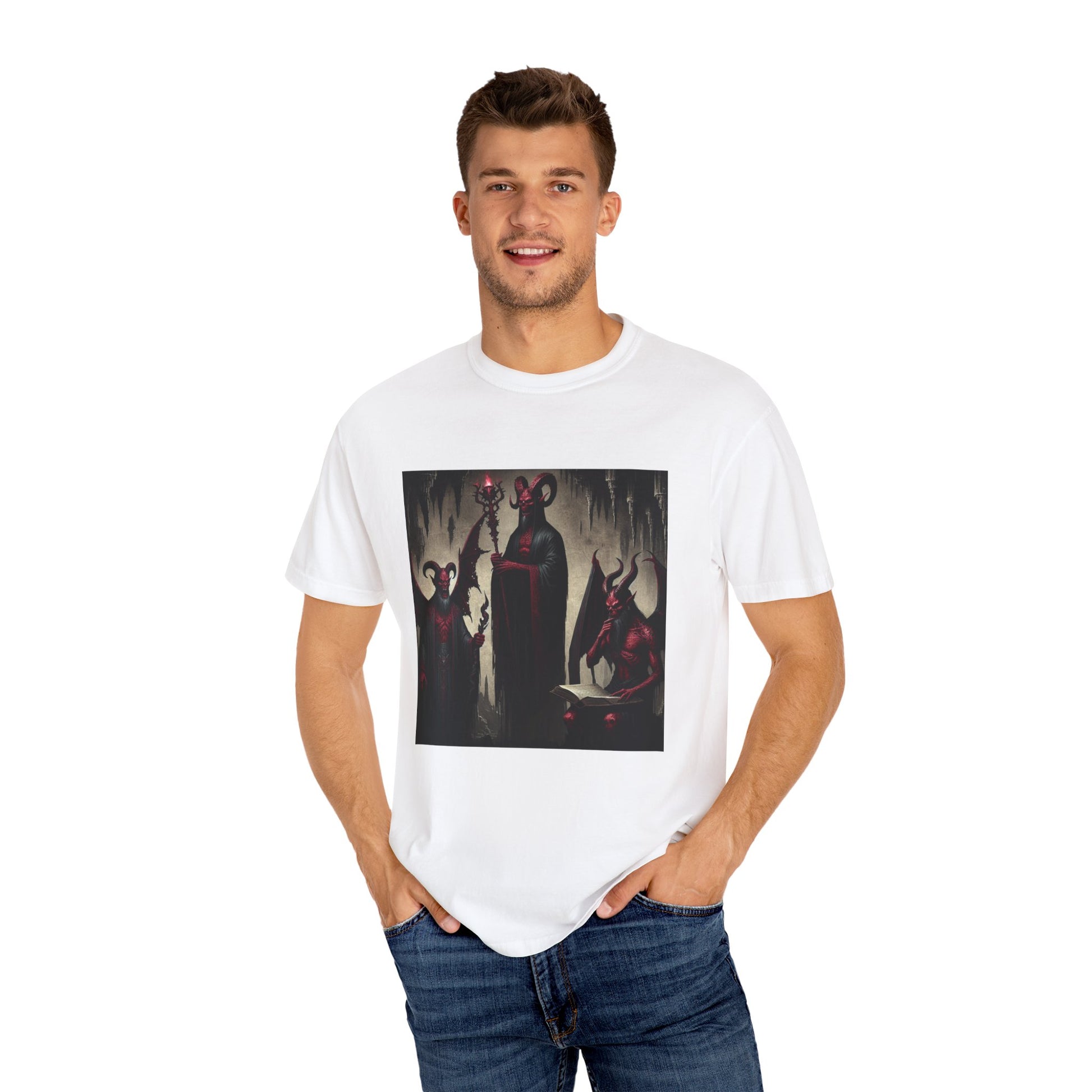 Devil-Inspired Unisex Garment-Dyed T-Shirt, Gothic Tee, Halloween Apparel, Cool Graphic Shirt, Unique Gift for Friends, Casual Wear