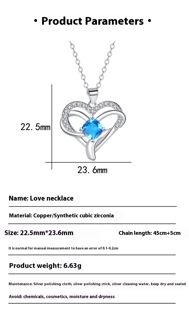 Infinite Love Heart-shaped Inlaid Necklace Women's High Sense Elegant Jewelry
